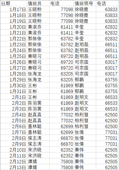 严格落实值班值守工作。假期严格落实“零报告”制度,如遇突发情况及时响应、妥善处置,第一时间报告。师生员工如离开校区驻地,须严格执行请销假制度。学院值班表如下: